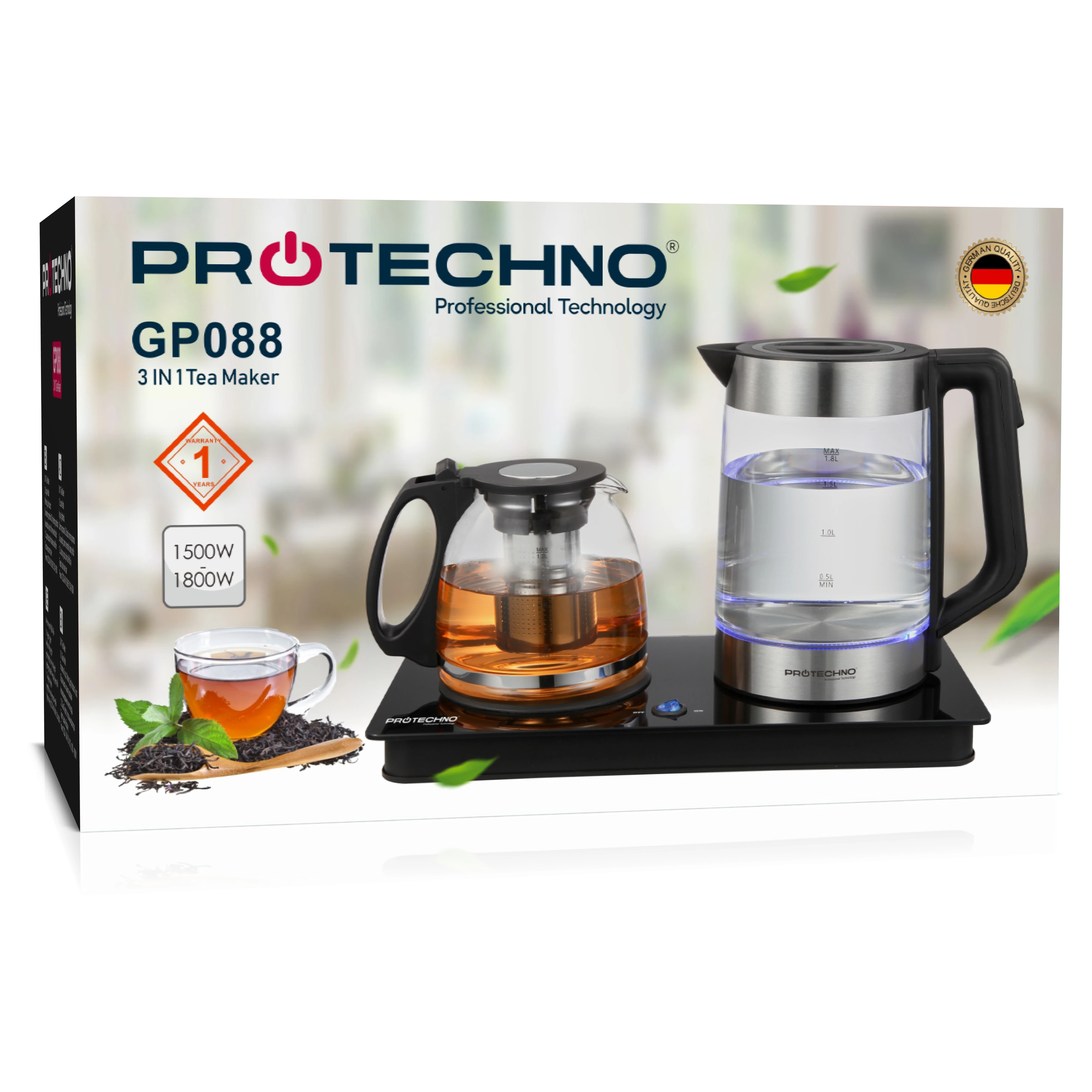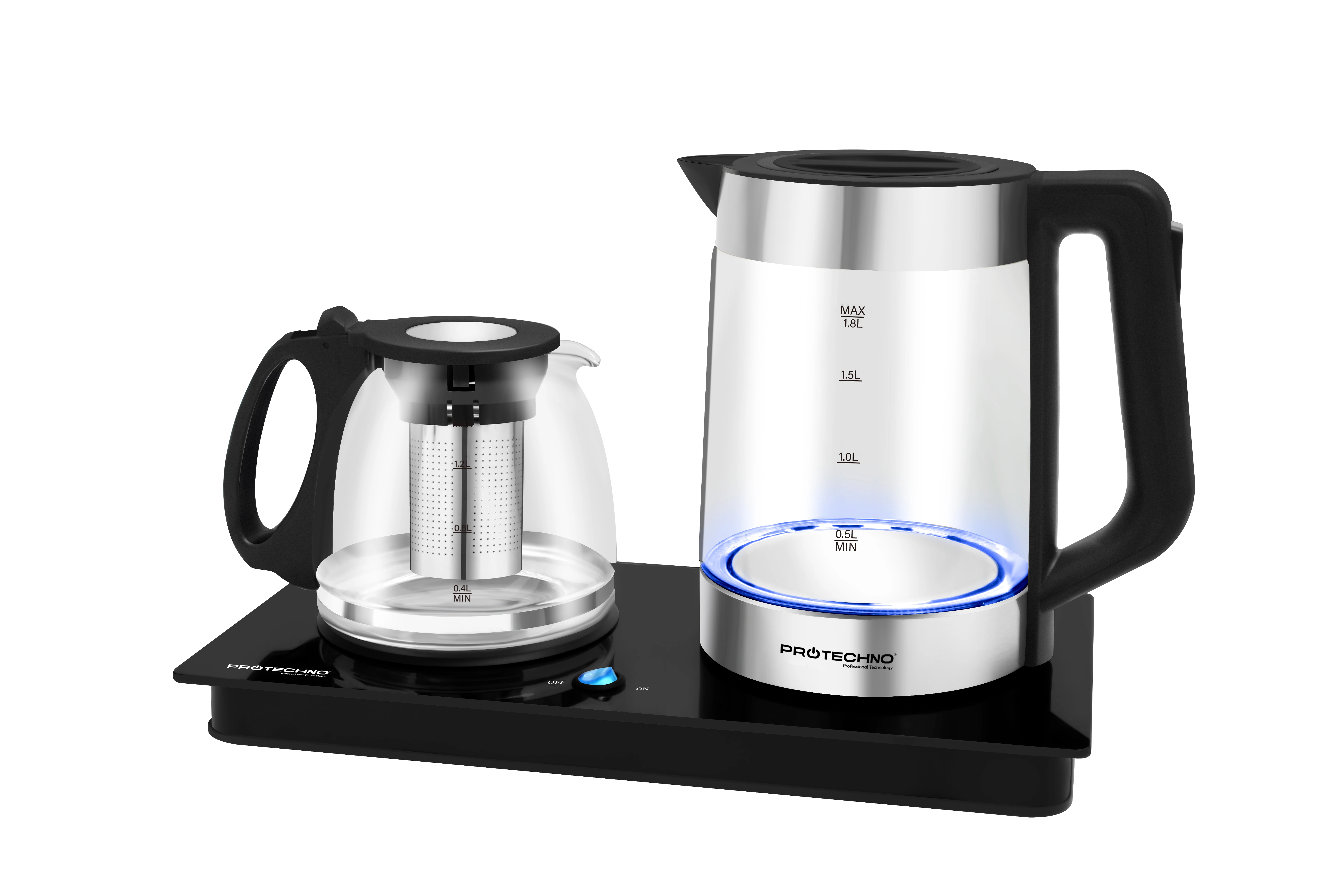 - 1.2L glass teapot with stainless steel filter
